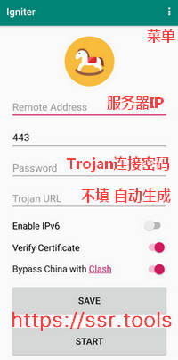 Trojan的安卓客户端名称是Igniter,是由官方开发维护的,算是Trojan官方客户端。