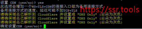 3.在下图界面中,输入yes回车继续(Cloudflare CDN可以稍后设置):
