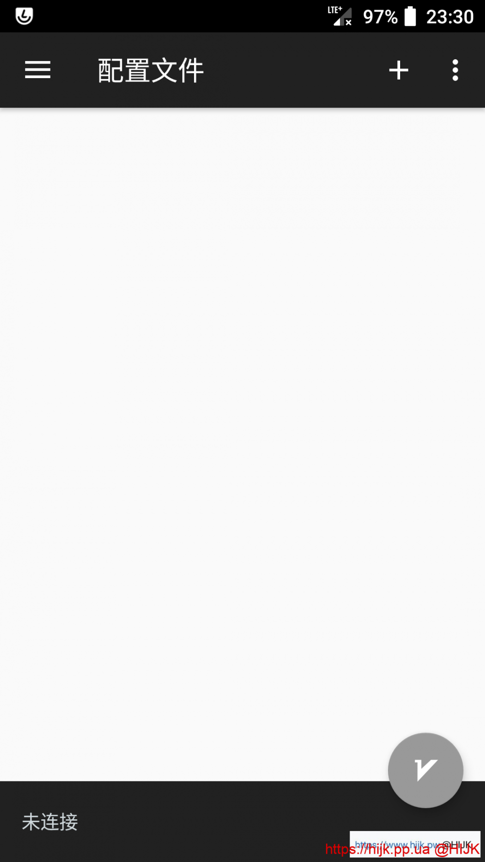 5. 点界面右上角的勾保存配置。界面回到主界面,点右下角的v2rayNG图标,启动程序。如果出现网络连接请求,点击确定: