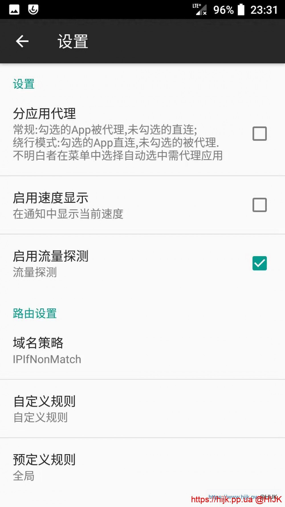 6. 一些高级设置在左侧菜单的“设置”中,建议将域名策略改成”Asis”,勾选“启用速度显示”打开vpn流量速度显示,其他不懂的就不用管: