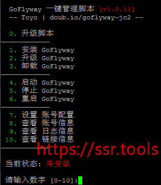 2.在出现脚本菜单界面时,输入数字1回车,开始安装Goflyway: