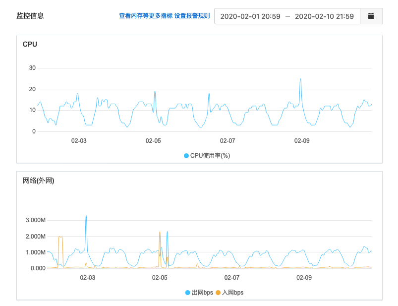 用了这么久的WordPress,对WordPress的性能优化也有了不少的经验。目前本站峰值PV 3万,峰值IP 1.6万,alexa排名大概15-18万之间,运行在阿里云1核2G 峰值100m带宽的t5突发性能实例上,平均cpu使用率在10%以下,内存占用基本不超过1G,非常平稳: