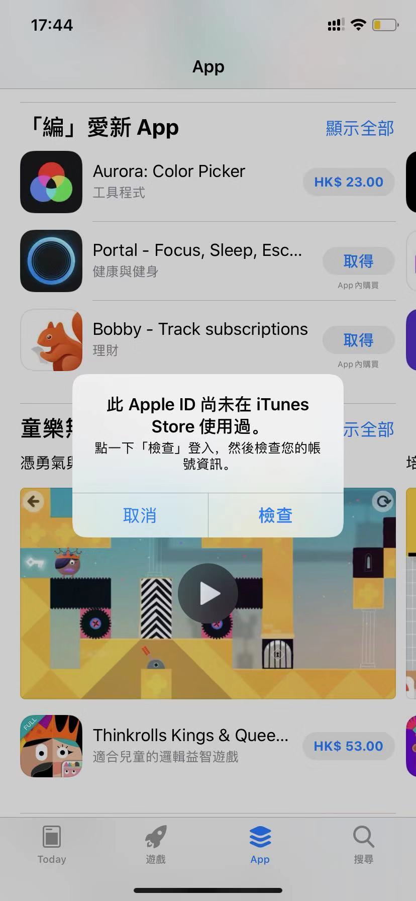 3. 打开“app store”,商店自动切换到香港地区。在主界面或者随便搜一款应用,点击后面的“取得”,弹出购买确认界面: