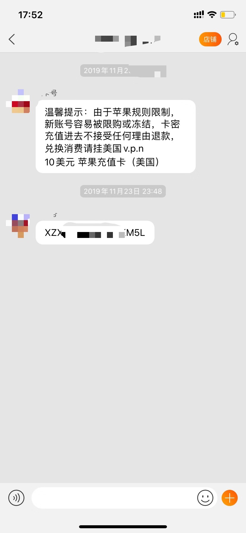2. 虚拟货币基本上都是自动发货,付款成功后会收到充值提示和兑换码(截图为本人之前购买的美区礼品卡):