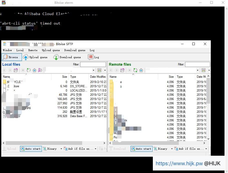 7. 登录成功后,会再弹出两个窗口:黑乎乎的那个是终端窗口,用来输命令,另外一个像文件夹的是sftp程序,用来上传和下载文件: