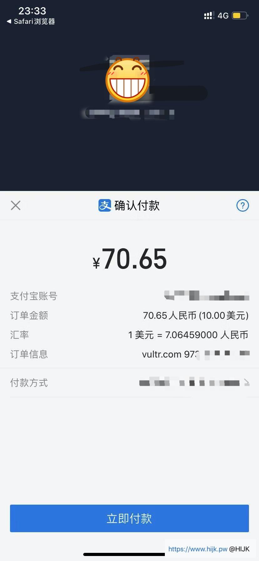 接着界面会唤起支付宝付款: