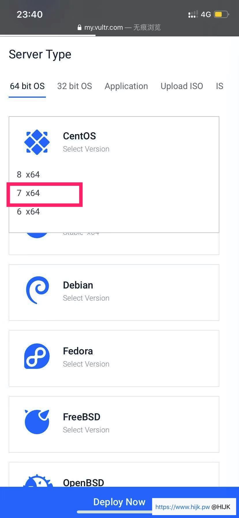 页面继续往下滑,选择服务器操作系统。建议选择“centos 7 x64”(注意是CentOS,不是CoreOS!),因为网上很多教程和脚本都是运行在这个系统上: