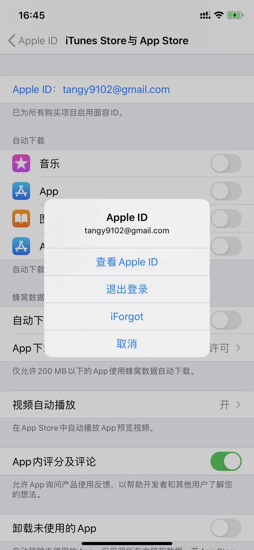 回到上一个页面,“iTunes Store与App Store”的账号已经改变: