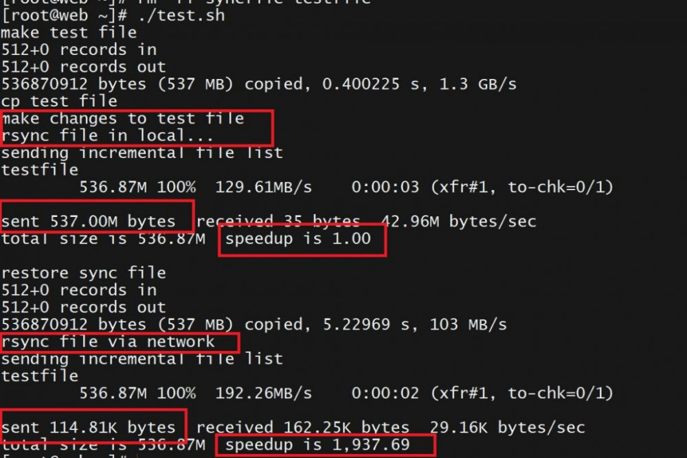 结果和预期的一致:本机内同步时,直接全量复制;走SSH协议后,仅发送差异部分,显著提高效率。