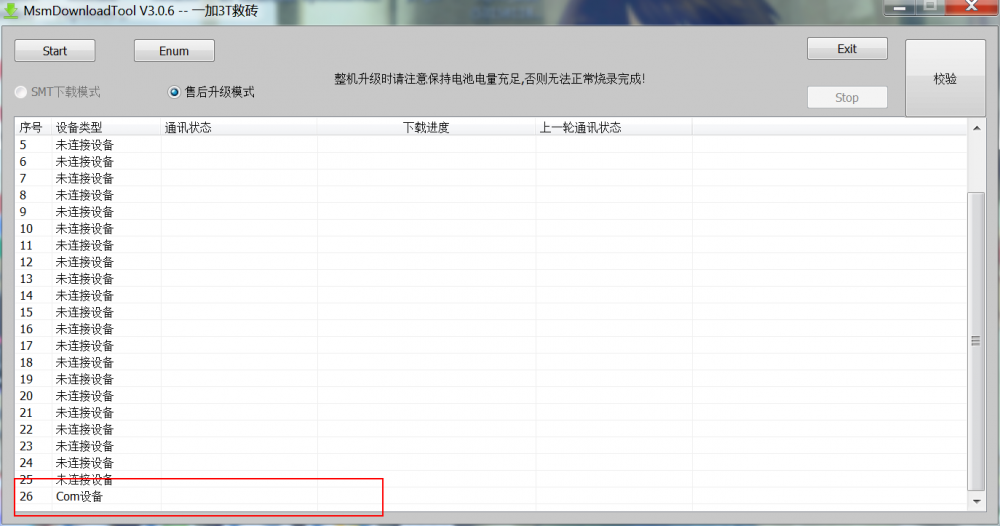 正确连接电脑的标识是:软件中出现“Com设备”,并且“设备管理”中出现“9008”的设备。