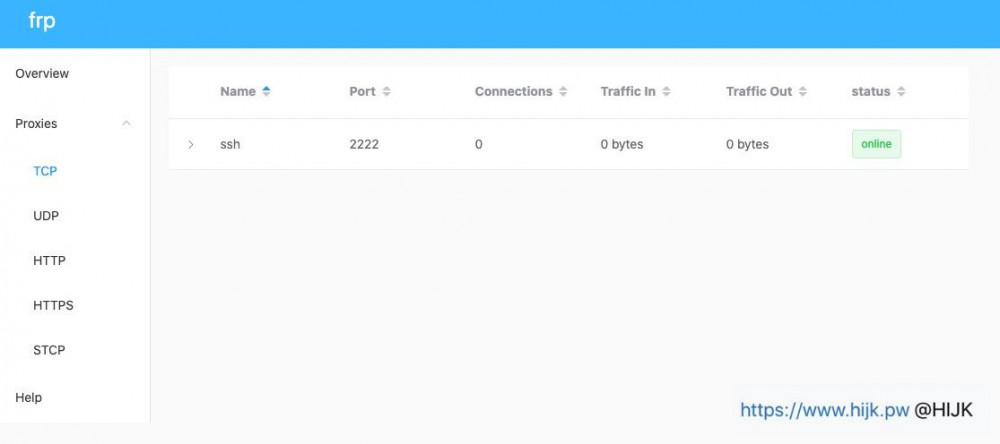 6. 登录frp管理后台,应该可以看到客户端已经连上来了: