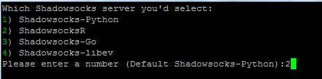 1.提示选择哪个版本安装,我们输入2后按回车,即选择SSR安装。
