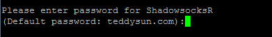 2.然后会提示设置SSR密码,输入自定义密码后按回车,建议不要使用默认密码。