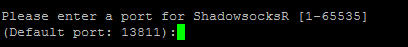 3.接下来选择SSR要使用的服务器端口,随便输入一个,也可以默认回车。