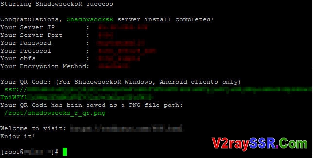 SSR服务端安装成功后,就可以在电脑、手机、路由器等设备上的SSR客户端上,按照以上设置的各项参数进行连接了。连接至VPS服务器,分别运行如下各命令: