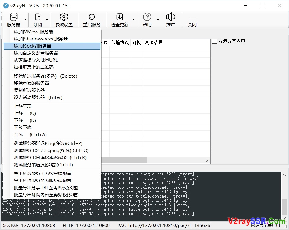 1、点击“服务器”-“添加SOCKS服务器”