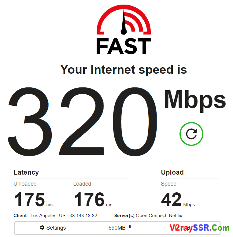 在VPS上面搭建了一个Trojan节点,FAST.COM测速结果如下:(测速环境,电信300M家庭网络 2020.03.31)