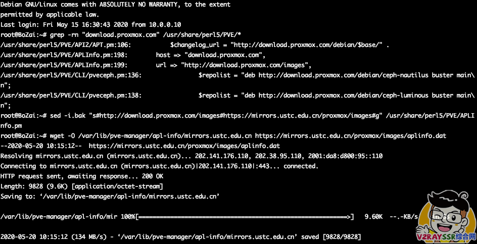 grep -rn "download.proxmox.com" /usr/share/perl5/PVE/* sed -i.bak "s#http://download.proxmox.com/images#https://mirrors.ustc.edu.cn/proxmox/images#g" /usr/share/perl5/PVE/APLInfo.pm wget -O /var/lib/pve-manager/apl-info/mirrors.ustc.edu.cn https://mirrors.ustc.edu.cn/proxmox/images/aplinfo.dat