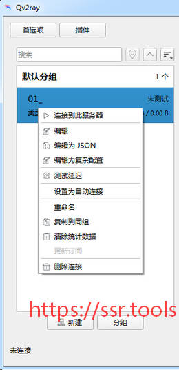 双击下图中的默认分组,可以显示已经添加好的代理服务器。右键点击相应服务器,即可出现常用操作菜单: