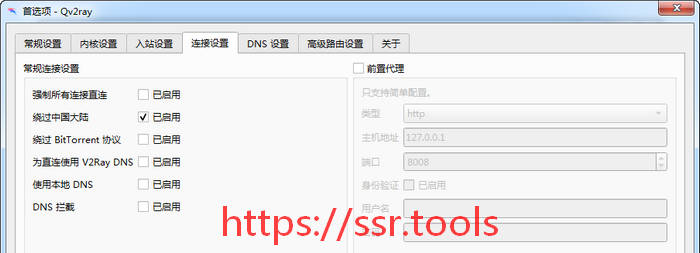 2.在首选项——连接设置 菜单下,可以设置Qv2ray的代理分流,包括: