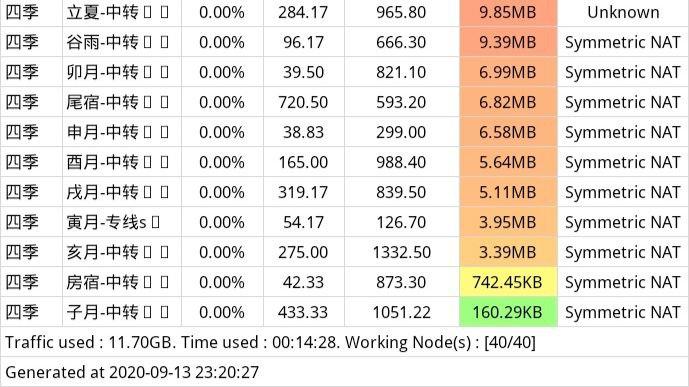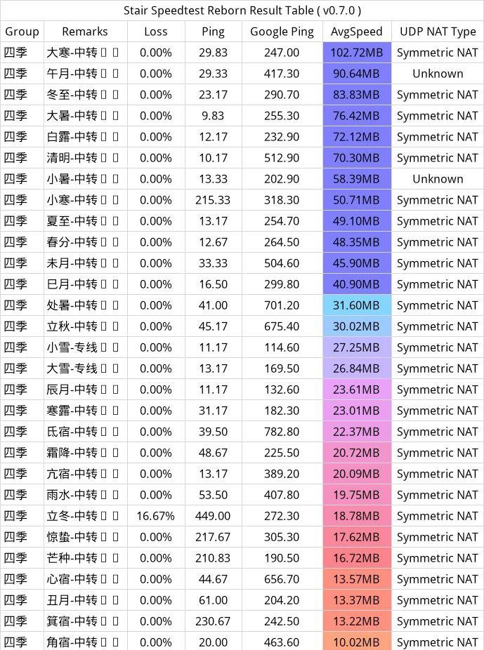 以下是机场节点的测速,我们可以看到很多节点还是很给力的。