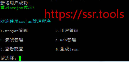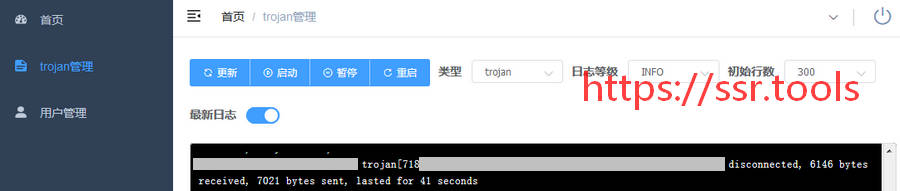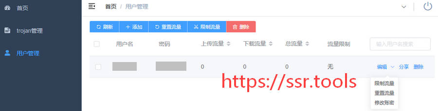 在用户管理菜单界面下,可以实现Trojan多用户管理,比如: