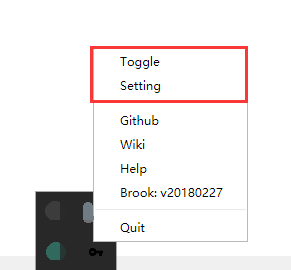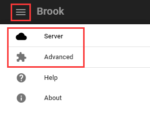 在 Brook 客户端的设置窗口中,点击左上角的 三个横杠,就会看到如下图: