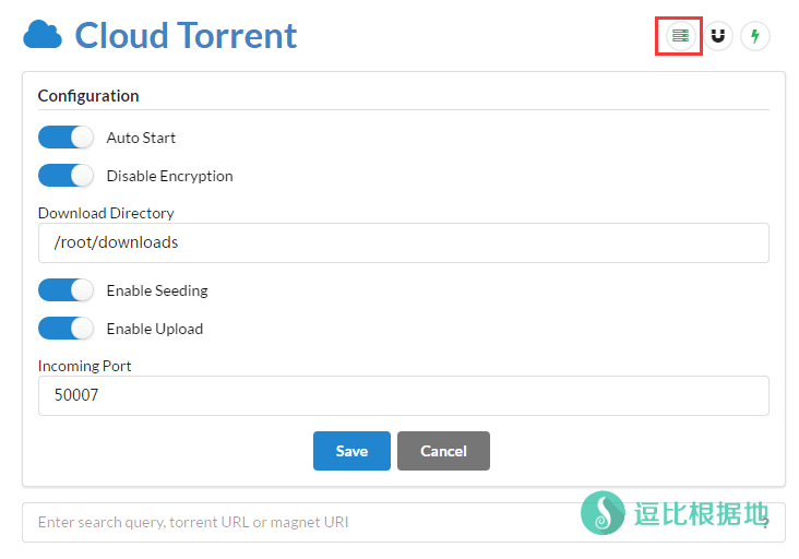 关于Cloud Torrent 右上角第二个的那个磁力图标,我也不清楚是干嘛的好像是编辑磁力链接的,懂得可以跟我说一下。