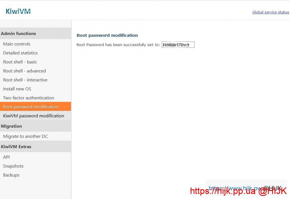 点击右边的KiwiVM Control Panel,可以查看VPS信息: