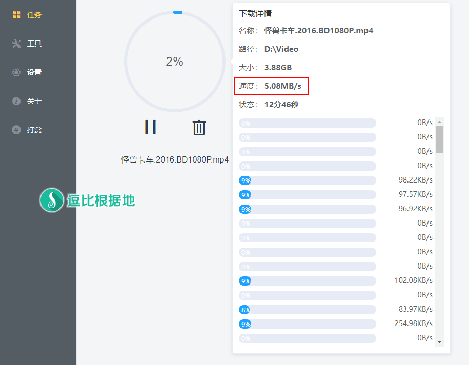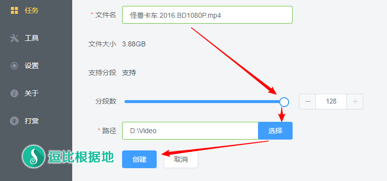 分段数:下载的线程数,最多128线程,线程越多不代表下载速度越快。
