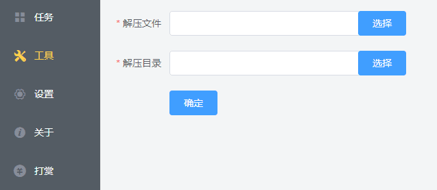 在 ProxyEe Down 网页中,点击左侧 工具 选项 – 百度云解压 – 选择要解压的文件 和 解压目录,并点击 确定 按钮即可。