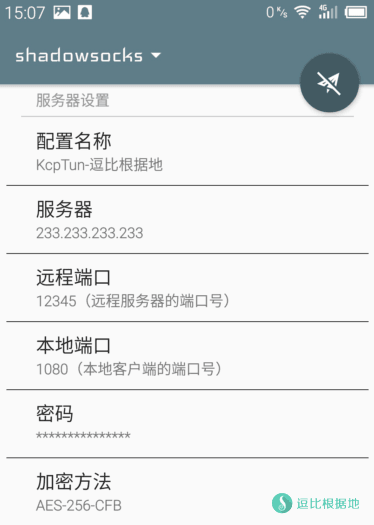 然后打开安卓Shadowsocks客户端(需要3.0版本以上的才支持,可以去 逗比 · 云 下载),正常填写你的 Shadowsocks 账号信息!