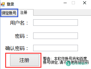 打开 注册工具.exe 软件,如下图所示,选择 注册 选项,然后依次输入 用户名、密码、确认密码 然后点击 注册 按钮注册(注意此处不是注册百度账号),如果没问题会提示注册成功。