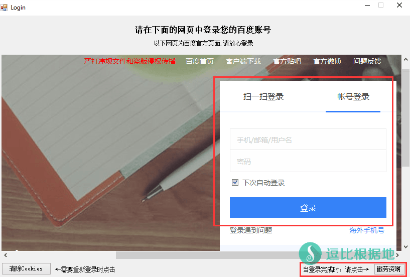 然后输入 你前面注册和绑定的账号密码(不是百度账号密码),点击 登入 按钮。