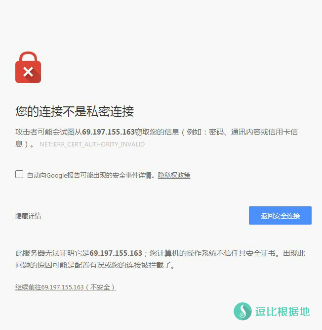 chrome有时会弹出如下警告,点击高级-继续前往即可