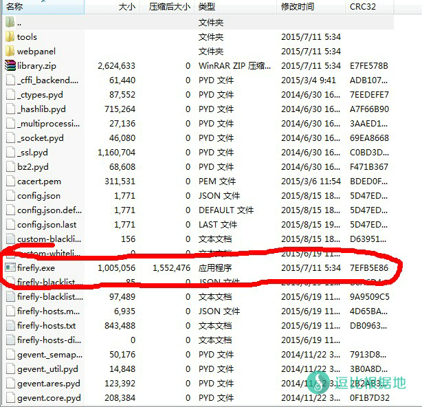双击并解压到文件夹,可见很多文件,双击图中圈出的firefly.exe即可运行代理