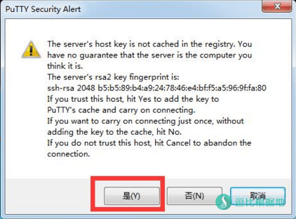 如果是这个电脑第一次链接这个VPS,就会提示你密匙问题,点 是(Y) 就好了!
