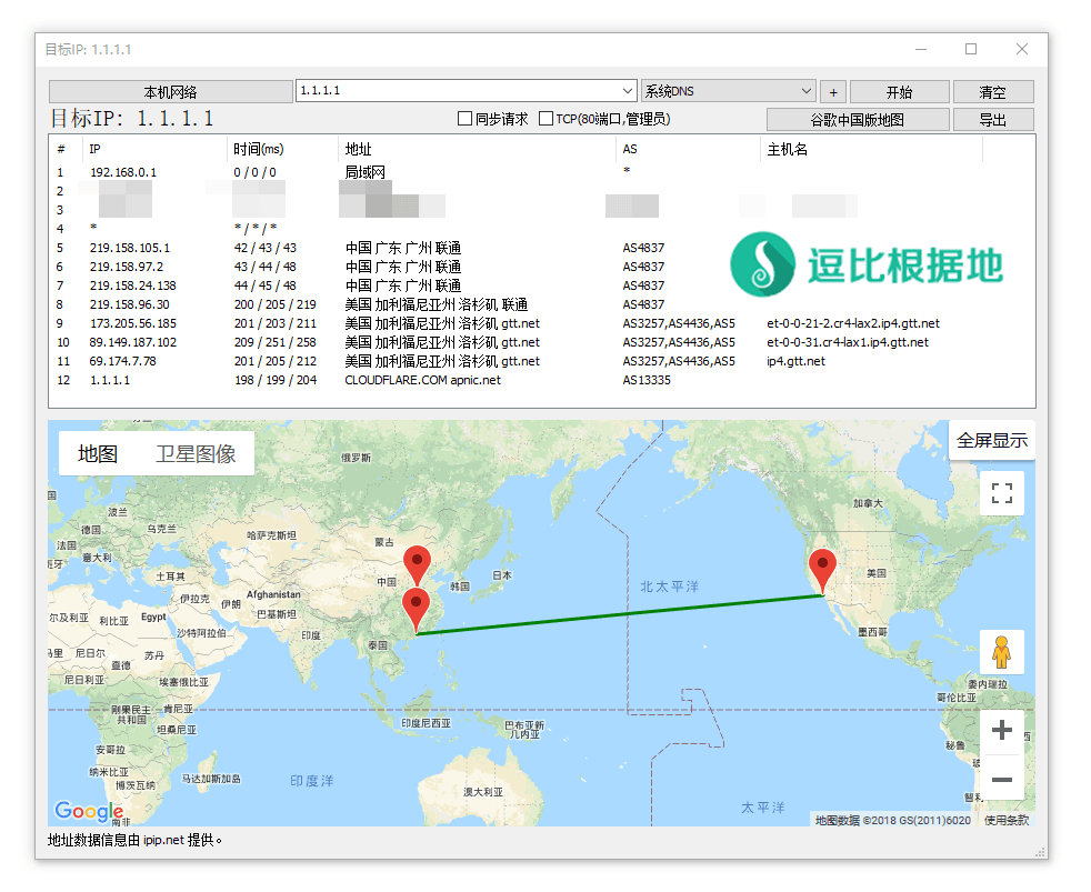推荐一个可以在地图上显示TraceRoute(路由追踪)路径信息的软件