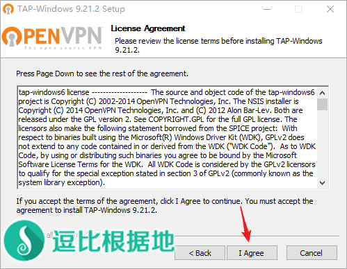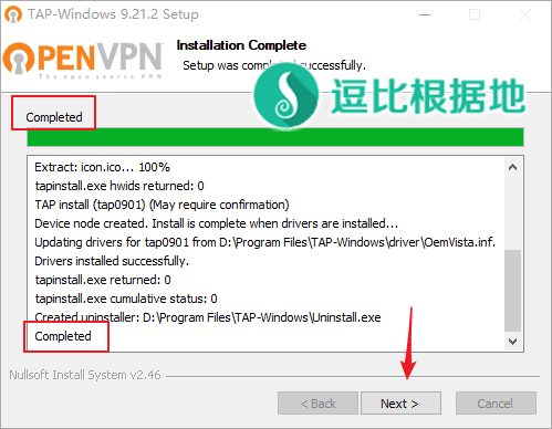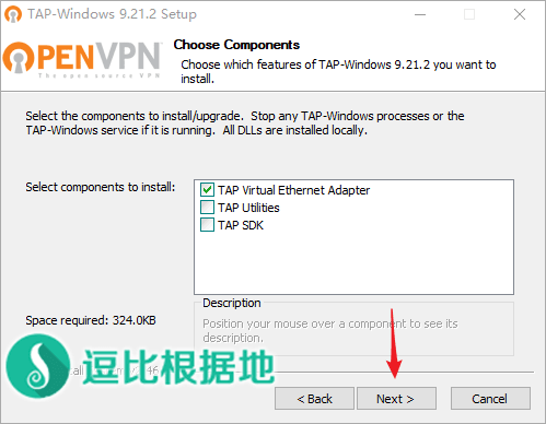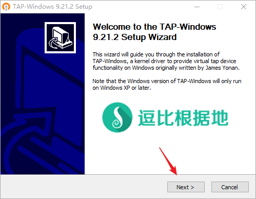 下载后得到一个 tap-windows-9.21.2.exe 文件,右键 以管理员方式运行,按照下图所示安装即可。