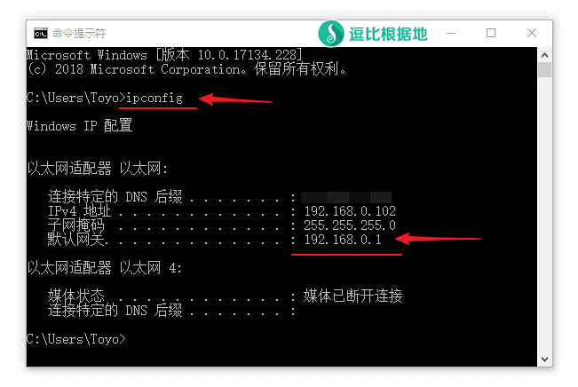如下图所示,192.168.0.1 就是我当前电脑的网关。