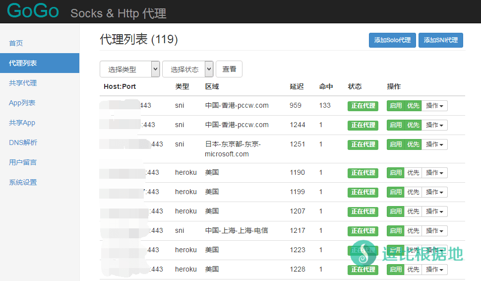 - solo 表示Host和IP一一对应的代理,例如您自己搭建的代理(GoGo服务端)或是部署在OpenShift2上的代理(GoGo服务端)。