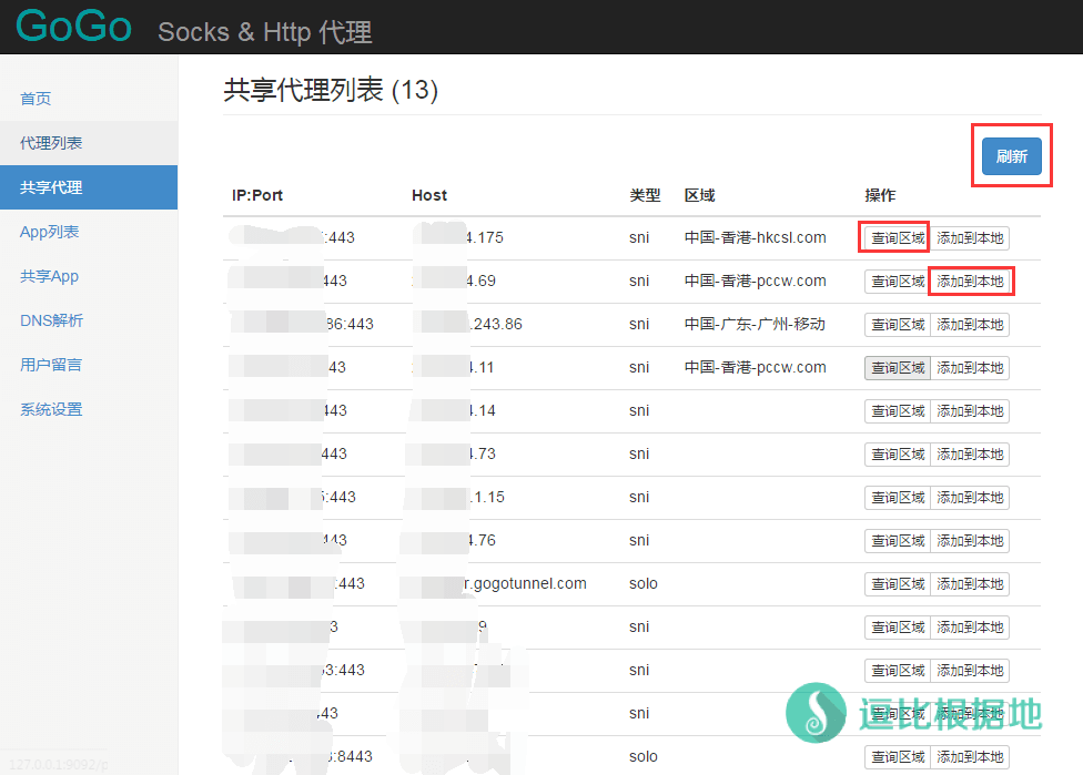 默认GoGo自带了大量的代理服务器,所以可以直接使用。