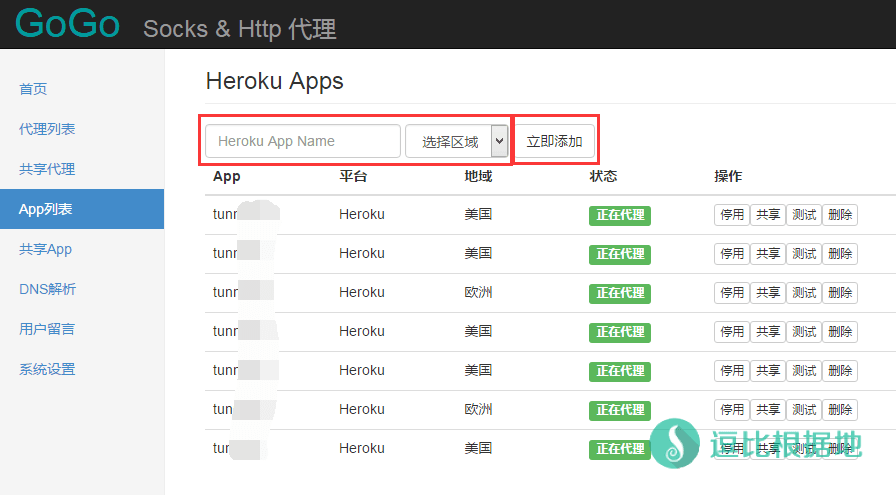 因为可以在Heroku上面创建APP来做代理服务器,所以这个就是 添加和管理 Heroku Apps的。