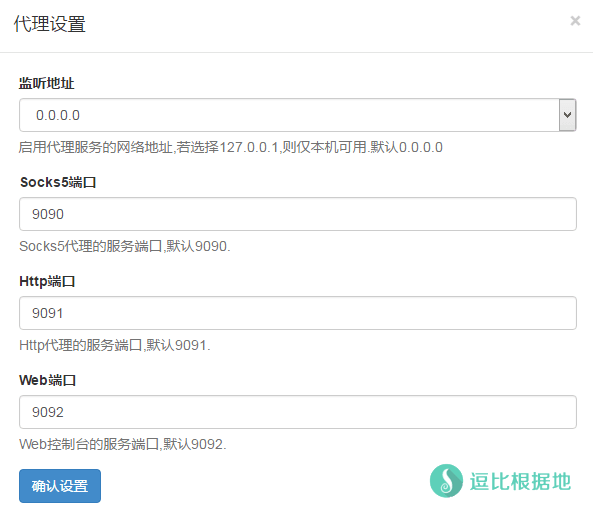 基本设置,可以修改 监听地址 和 HTTP/SOCKS5端口,以及WEB管理面板的端口。