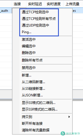 通过TCP检测选中:只通过TCP检测当前选中的 节点账号是否可用。
