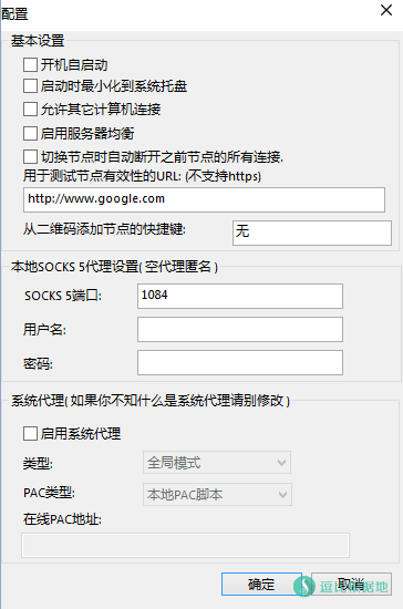 检测用的URL可以自定义,点击窗口右下角的 [齿轮]按钮,即可看到 [用于测试节点有效性的URL:(不支持https)],修改下面的输入框内的 URL 即可。