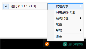在上面乱七八糟的都配置完后,我们右键托盘图标,在弹出菜单的代理列表中选择你要使用的节点账号。