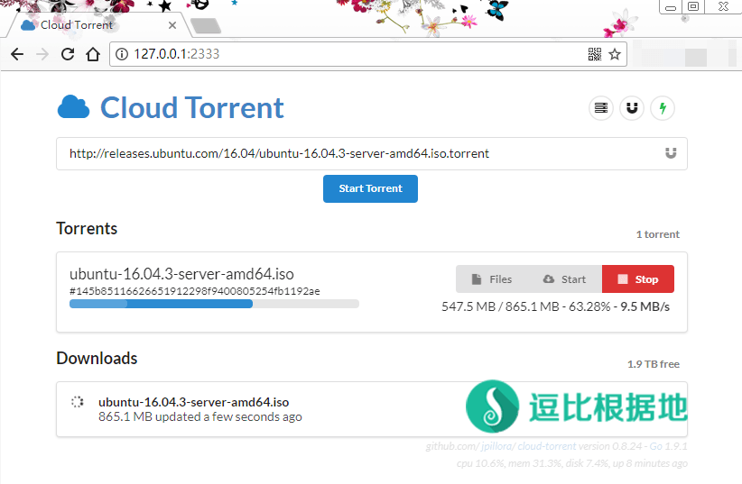 Cloud Torrent 使用说明请看:https://doub.io/wlzy-38/#使用说明