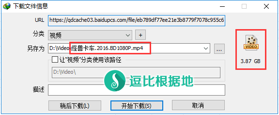 点击确定按钮后,就会显示下载文件信息,我们等几秒,IDM就会解析下载资源URL完成,右侧也会正常显示 文件格式图标和文件大小,并且文件名也识别正确,这时候我们就可以点击 开始下载 按钮下载了。