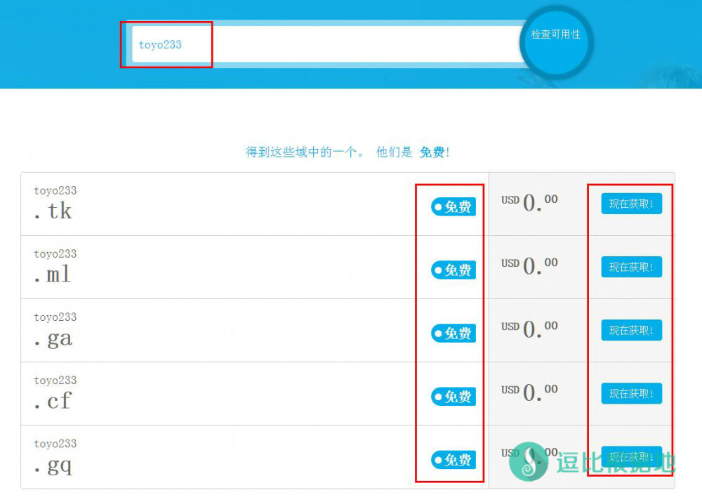 先打开域名注册网站:Freenom.com,然后在屏幕中间输入框输入你想要的域名比如:toyo233.ml,然后点击检查可用性